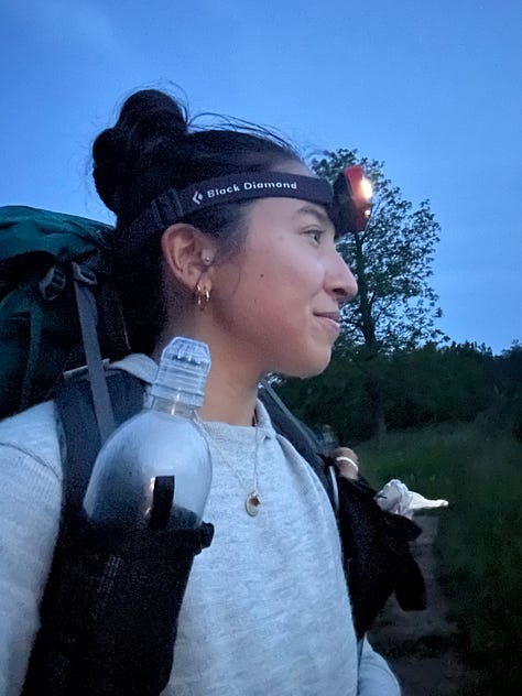 I slept terribly that first night. I woke to every sound in the stillness of the night. The soreness in my legs settling in from hiking with a 30-lb pack for the first time ever. I was hungry and thirsty, and honestly, a little nervous about the morning bathroom situation—despite figuring out how to pee in the woods without peeing on myself.