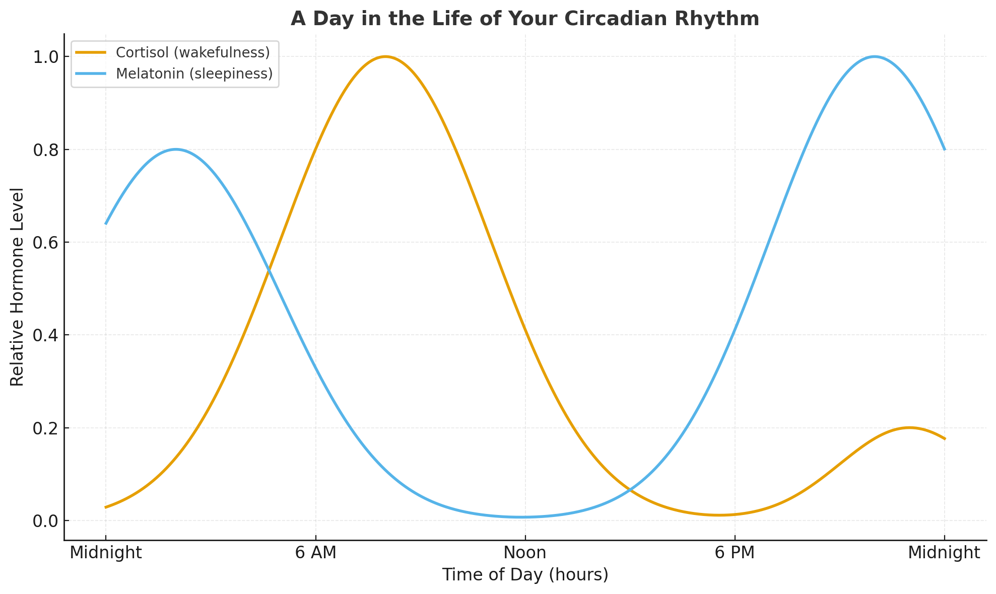 The main players in the sleep-wake cycle are cortisol, which rises in the morning to wake us up, and melatonin, which rises in the evening to guide us into rest. When this rhythm gets disrupted — from late-night screens, irregular meal times, or staying up past the body’s natural wind-down window — the whole system falls out of sync.